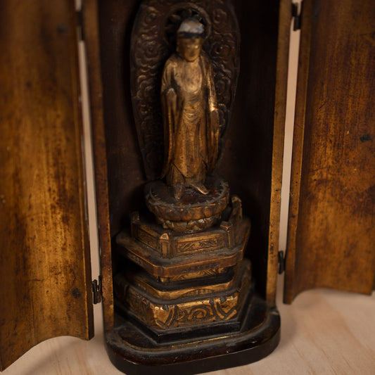 Antique Japanese Portable Shrine with standing buddha -Zushi