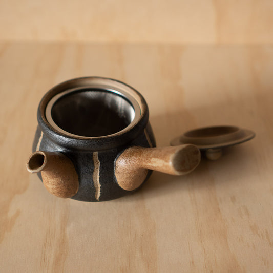 Japanese Ceramic Kyusu Teapot Hori Tokusa Black and brown stripe