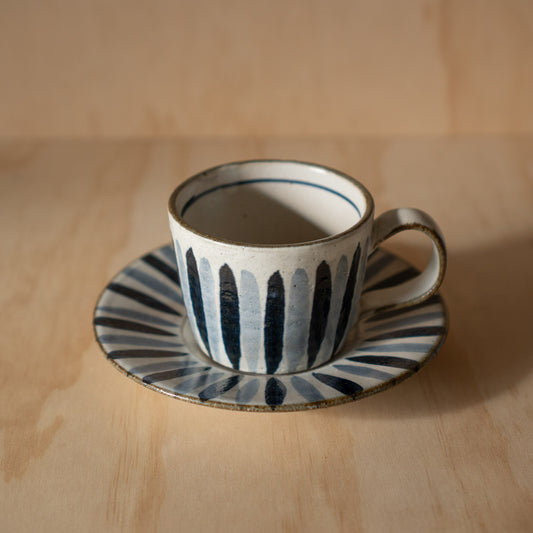 Japanese Ceramic Mino ware blue and white stripe cup and saucer set
