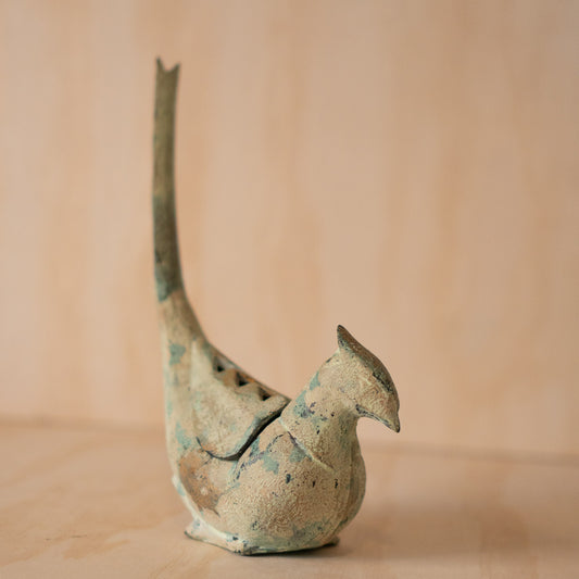 Vintage Japanese Patinated Cast Iron Pheasant Koro - Incense Burner