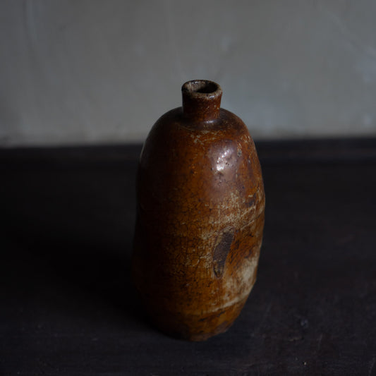 Antique Japanese Brown Ceramic Tokkuri Sake Bottle