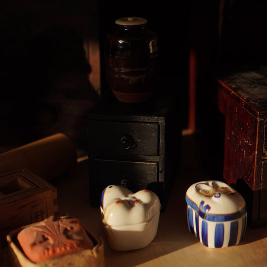 Vintage Japanese Otafuku Mask lidded ceramic kogo incense container