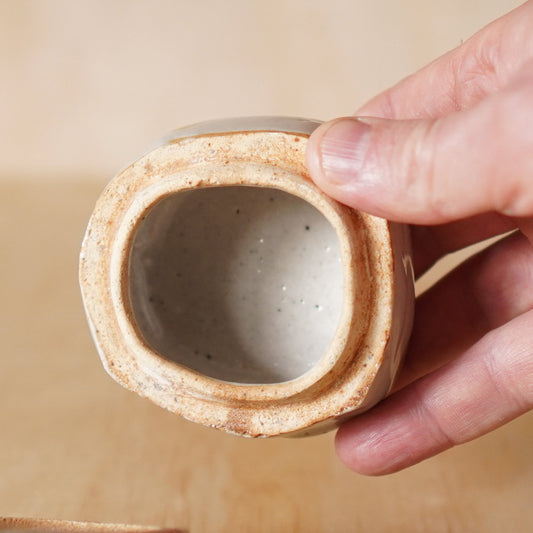 Vintage Japanese off white speckled and striped Ceramic Sake Cups Pair