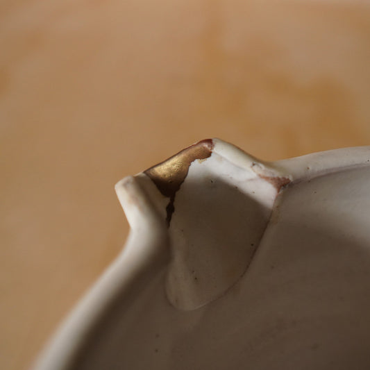 Antique Japanese Hirashimizu ware bowl with Kintsugi gold repair