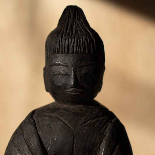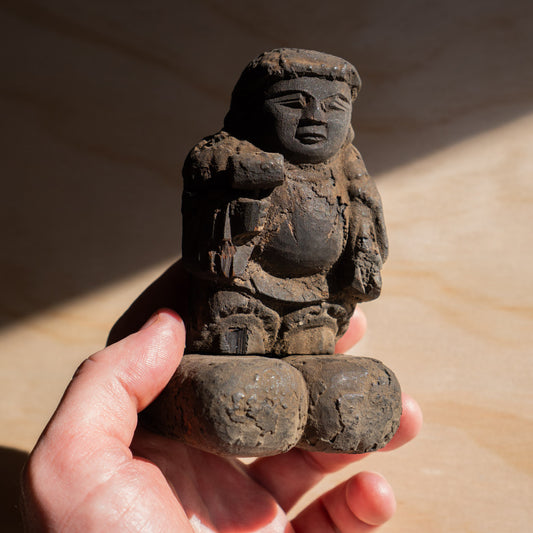 Antique Japanese small Ash covered Daikoku Wooden Carving