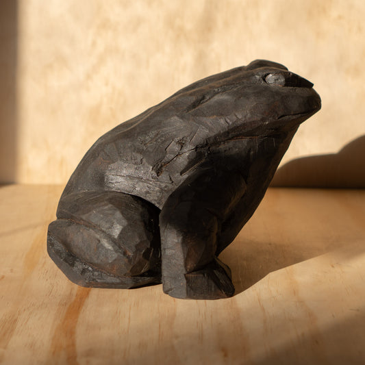 Japanese Vintage Mingei Folk art carved large wooden Frog