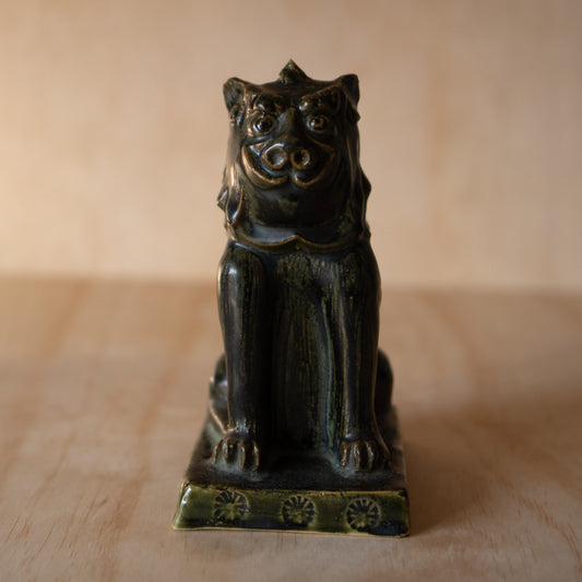 Japanese Vintage Seto ware Oribe glazed Komainu by master potter Kato Usuke