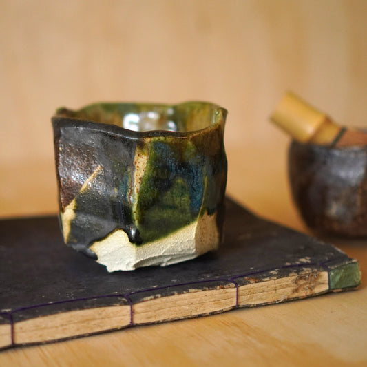 Don Ricardo Ceramic Oribe Green and White Yunomi Tea cup