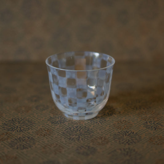 Hirota Glass - Japanese Milk Glass tea cup - checker