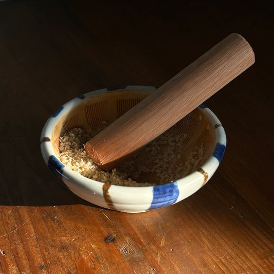 Exquisite humanity in single square inch of this Japanese utilitarian artefact. Touched our hearts when we unwrapped the parcel and there was a handwritten note, describing some of the provenance and how prized it had been previously by the owners of Kanso House.