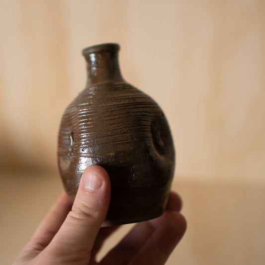 Vintage Japanese Ceramic Bizen Dimple sake bottle vase