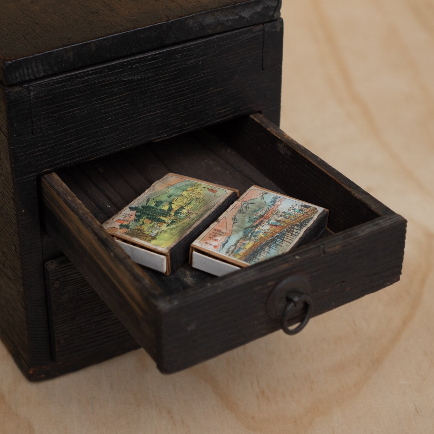 - Inside the top drawer we found some cool old matchboxes with woodblock print designs, so well leave those in there as well. A really nice piece of history!ย