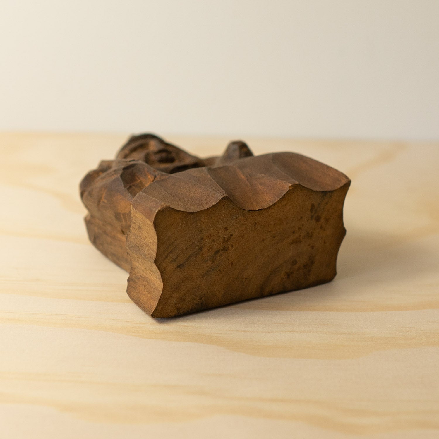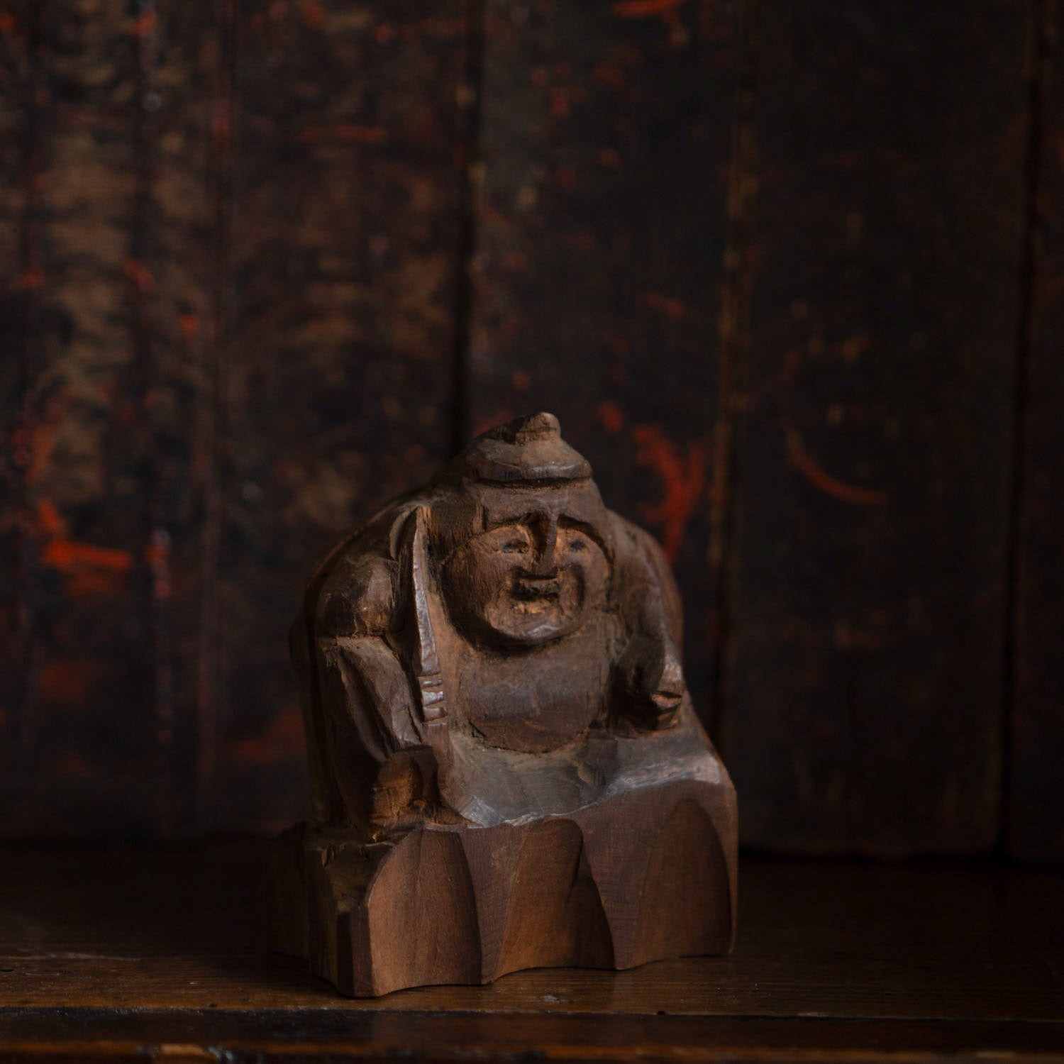 This particular Ebisu-sama carving possesses a highly unusual feature: its back is significantly hollowed out or scooped out.