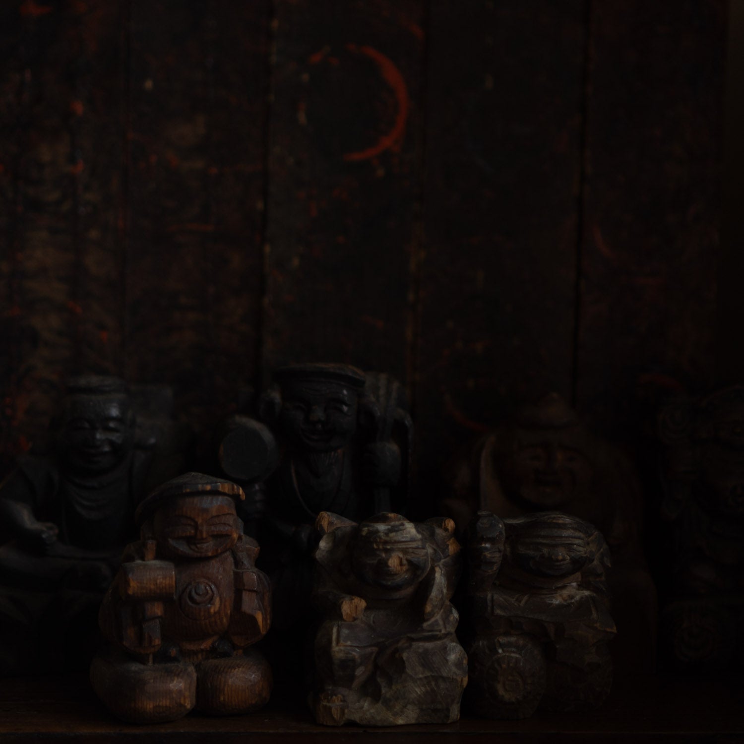 While the overall carving style is bold, the faces are rendered with exceptional detail, giving the impression that they are truly inhabited by a spirit. You will notice that Ebisu's arm is broken, but in the Japanese sensibility, this is not a major flaw.