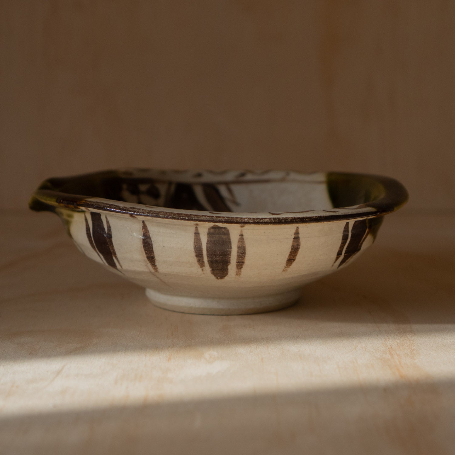 A beautiful Oribe Katakuchi pouring bowl we acquired in August when we went on a tour of the Seto Ceramics region near Nagoya visiting kilns and makers in the area.
