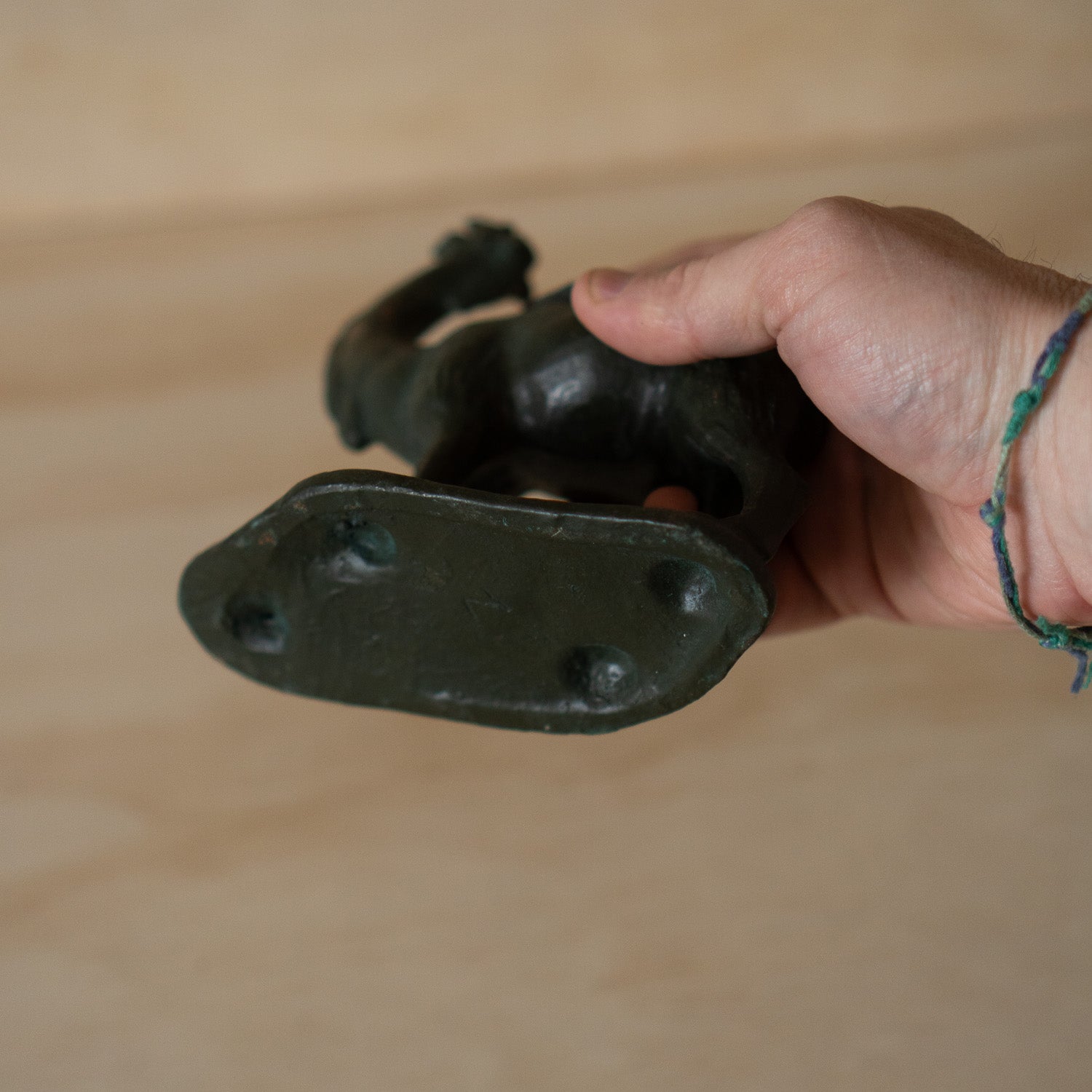 Has a nice green patina with a couple of rust patches on the neck.