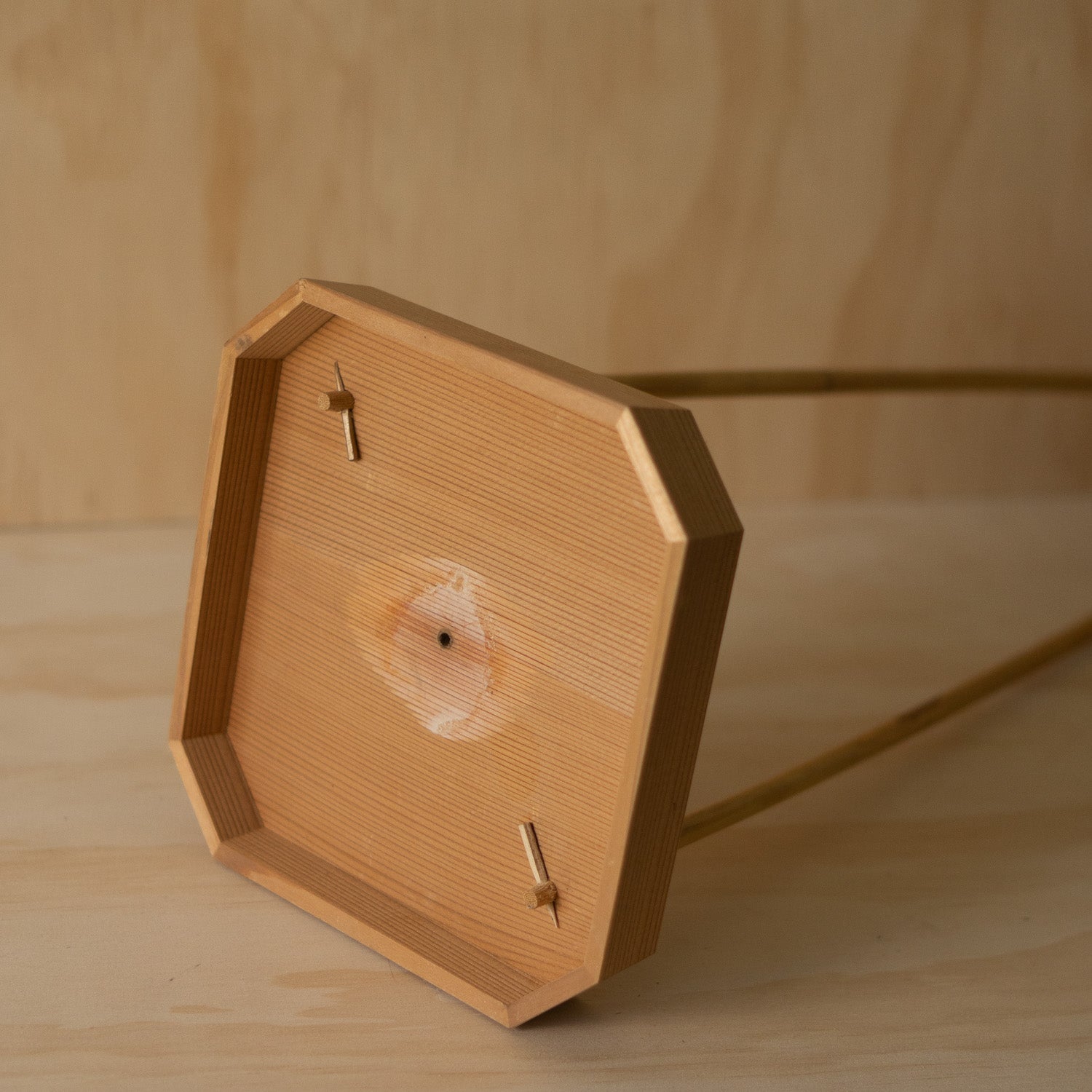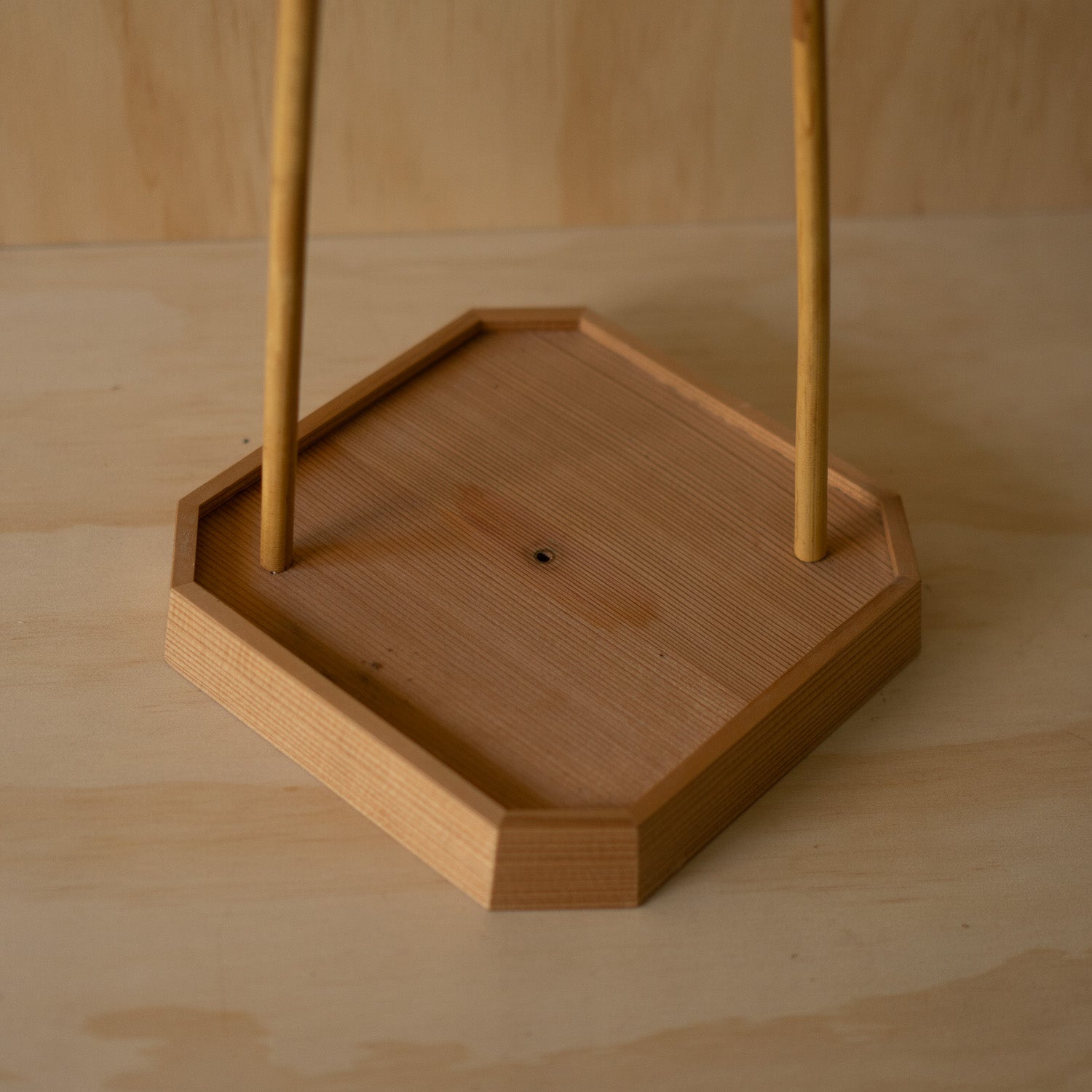 Traditionally used in Tea ceremony for lighting the way for guests. Ashimoto Ando means Foot lantern, to light the path for the feet. With a simple cedar construction, washi paper is used to diffuse the light of the candle inside.