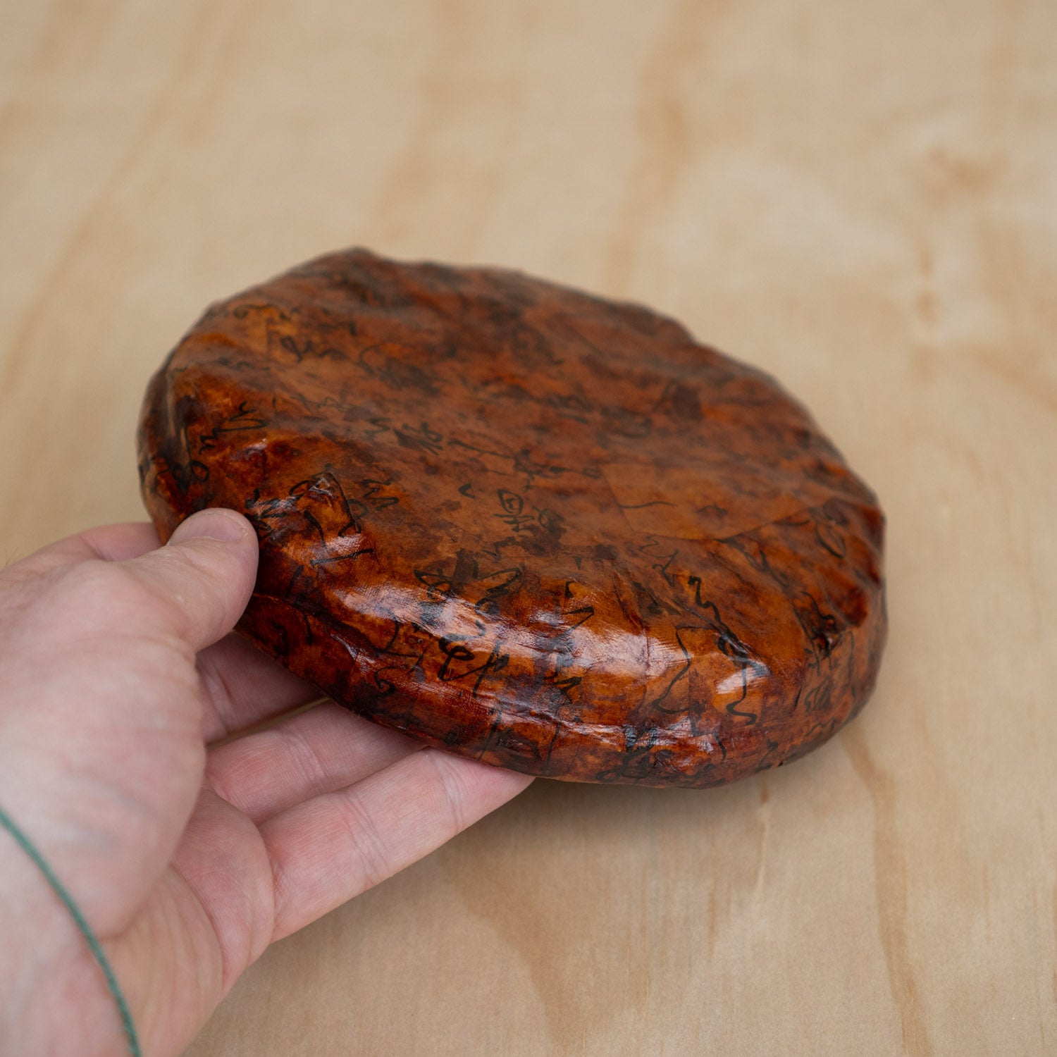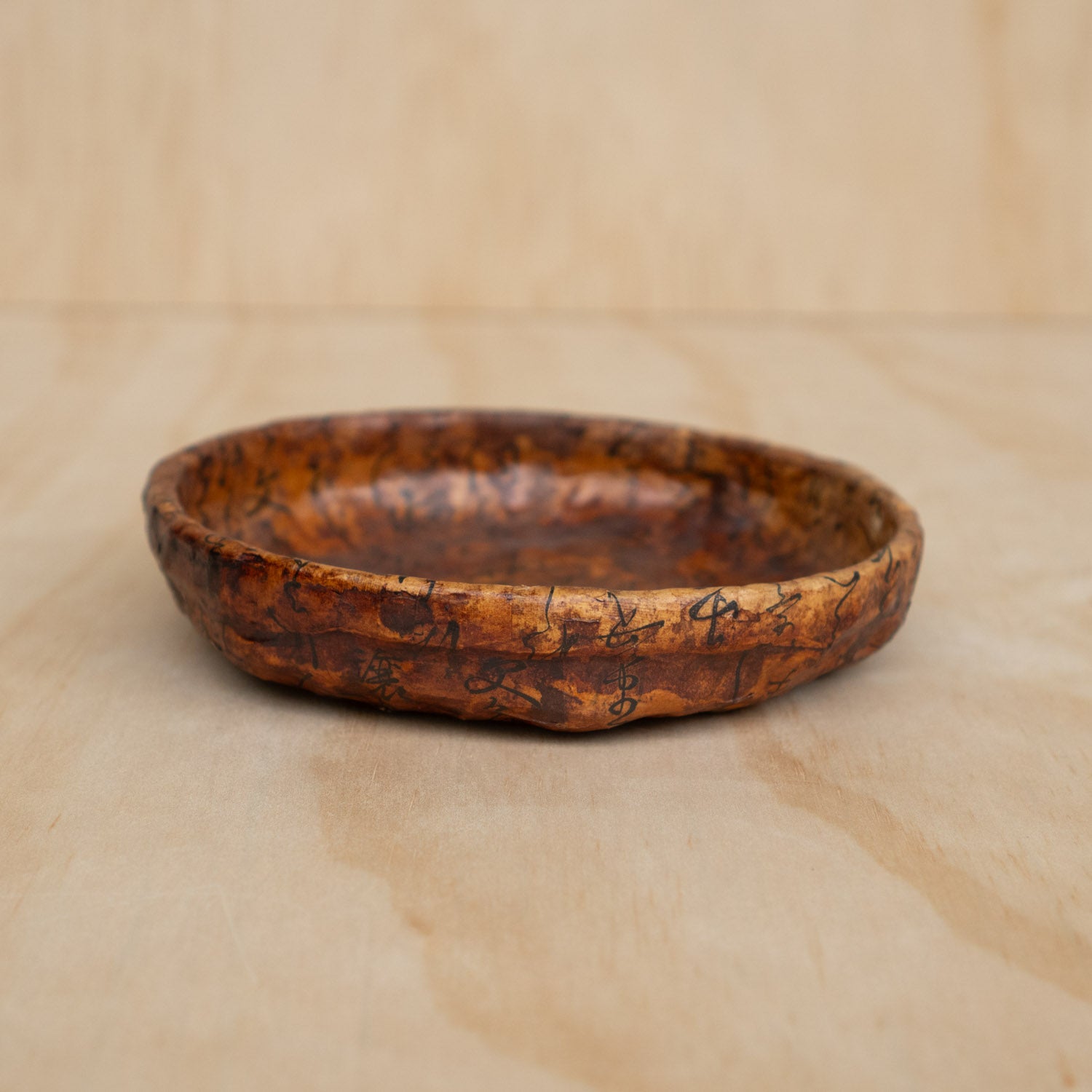 A sweet little washi paper covered bamboo tray, this type of folk art tray is called Ikkanbari. Its made by covering layers of washi paper over a bamboo frame, each layer soaked in Kakishibu, a stain made from Persimmon tannins.